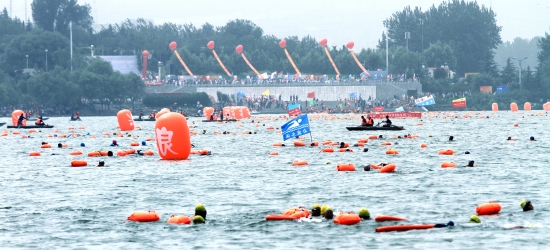 千人橫渡,萬人觀看,與母親河親密接觸。5月25日上午,2014中國(三門峽)橫渡母親河活動在天鵝湖國家城市濕地公園黃河水域成功舉辦,全國28個省(區(qū)、市)及中國香港、中國澳門79個城市105支代表隊2658人參加橫渡,創(chuàng)造了全國公開水域游泳的新紀錄。