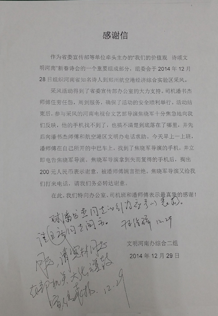 在鄭州航空港經(jīng)濟(jì)綜合試驗區(qū)活動中受表揚
