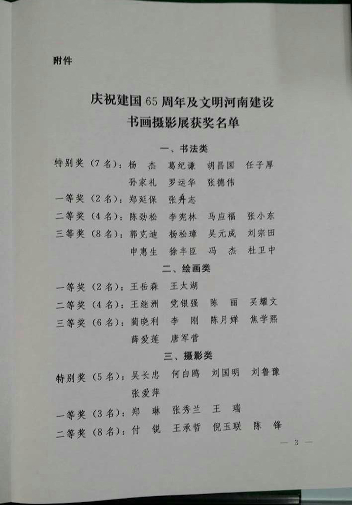 慶祝建國(guó)65周年及文明河南建設(shè)書(shū)畫(huà)攝影展獲獎(jiǎng)名單