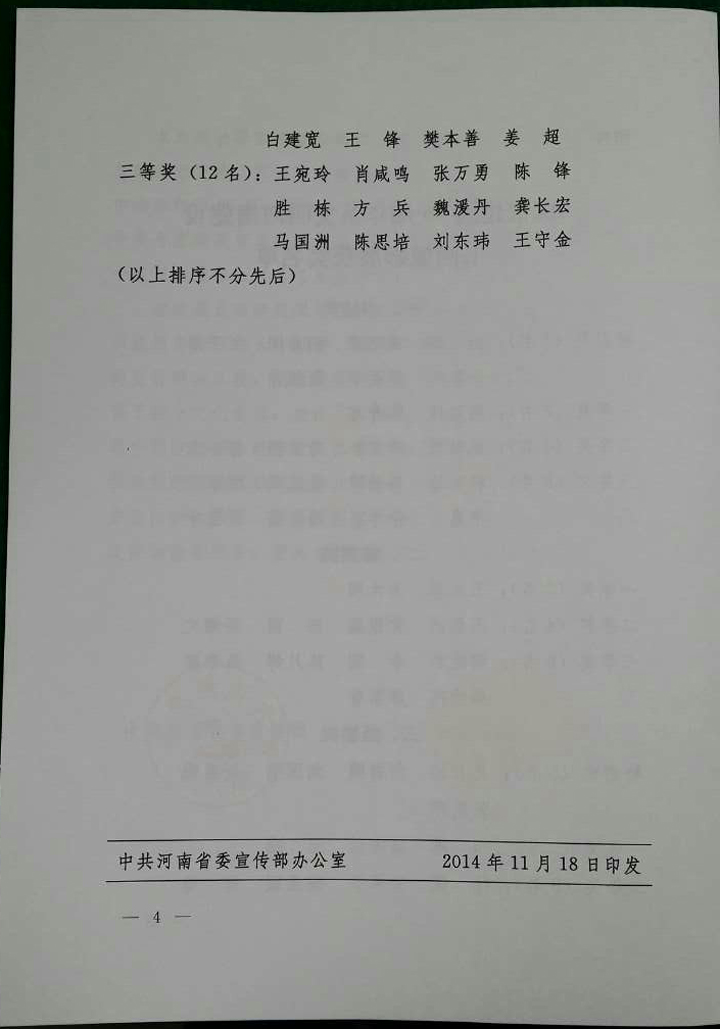 三等獎(jiǎng)(12名):王宛玲 肖咸鳴 張萬(wàn)勇 陳 鋒 勝 棟 方 兵 魏湲丹 龔長(zhǎng)宏 馬國(guó)洲 陳思培