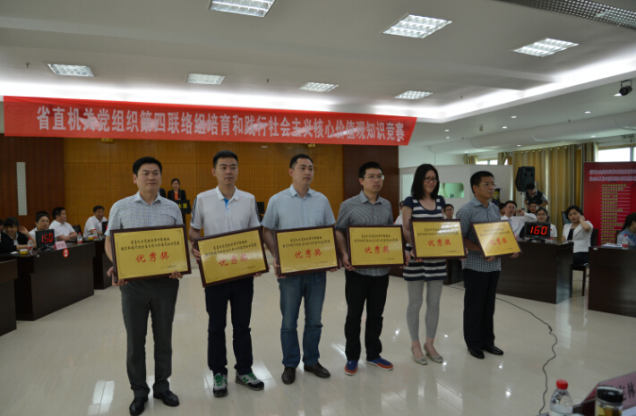 2014年5月21日在省廣電局24樓會(huì)議室成功舉辦了“培育和踐行社會(huì)主義核心價(jià)值觀知識(shí)競(jìng)賽”。優(yōu)秀獎(jiǎng)代表隊(duì)領(lǐng)獎(jiǎng)隊(duì)員合影