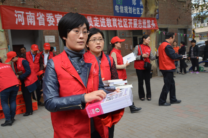 10月31日下午,一場(chǎng)精彩的小型文藝演出在鄭州市緯五路省教育社區(qū)舉行。演出期間,志愿者向現(xiàn)場(chǎng)觀看的居民免費(fèi)贈(zèng)送圖書、報(bào)紙和DVD。據(jù)了解,這是省委宣傳部開展的黨員志愿服務(wù)進(jìn)社區(qū)活動(dòng)。