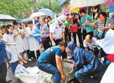 “快!找個(gè)衣服給孩子蓋住?!辈恢l喊了一聲。由于下雨天冷,光溜溜的小家伙凍得渾身發(fā)紫。話音剛落,沿街門店的商戶楊女士健步如飛,回到店里把自家孩子的毛毯拿過來,熱心市民有的還把衣服脫掉……毛巾、毛毯、衣服從人縫里送進(jìn)來,一層又一層地裹住嬰兒。當(dāng)120急救車趕到現(xiàn)場(chǎng),眾人把產(chǎn)婦抬上了救護(hù)車,所有人長長地出了口氣。